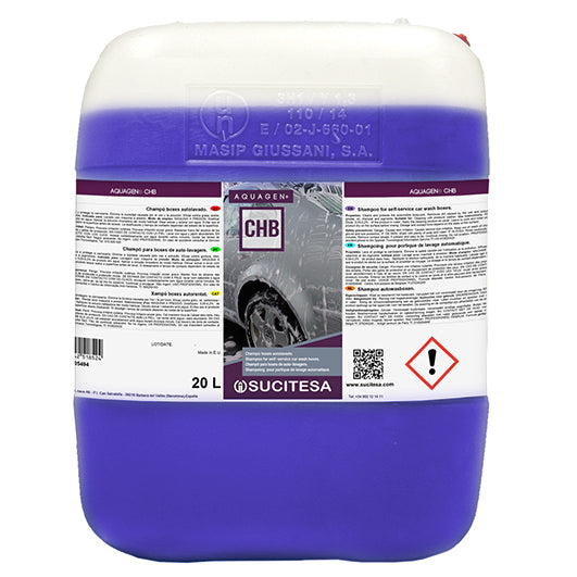 Aquagen CHB é um champô espumante profissional, de alta performance, indicado para a lavagem mecânica de todo o tipo de veículos, seja com máquinas de alta pressão ou em boxes de lavagem.
