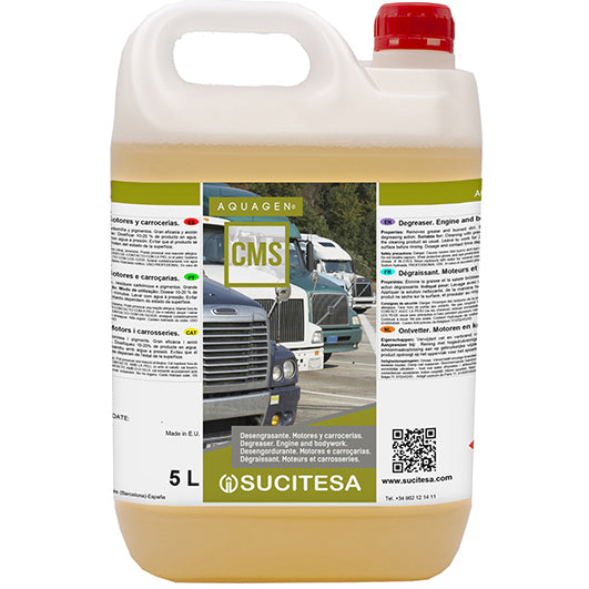 Aquagen CMS é um desengordurante enérgico profissional, de alta performance, indicado para a lavagem de topo o tipo de motores e carroçarias de camiões e outros veículos industriais.