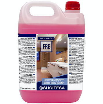 Aquagen FRE é um detergente desincrustante suave, de alta performance, formulado à base de ácido cítrico e desenvolvido para a limpeza diária de casas de banho.