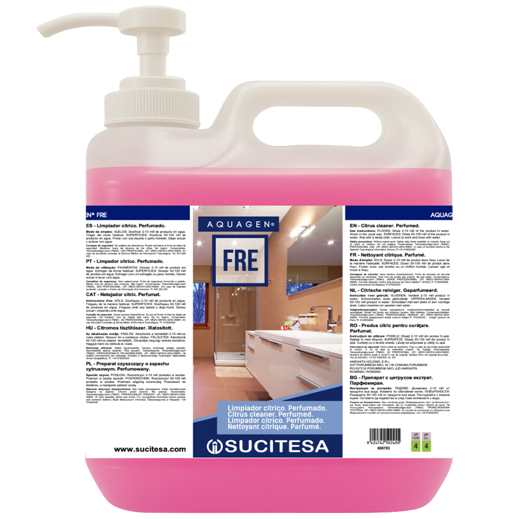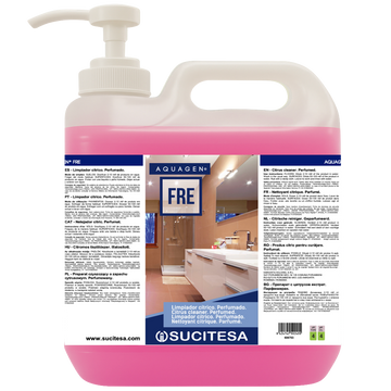 Aquagen FRE é um detergente desincrustante suave, formulado à base de ácido cítrico, desenvolvido para a limpeza diária de casas de banho.