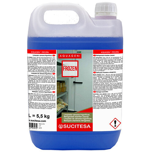 Aquagen Frozen é uma especialidade Sucitesa. É um detergente multifuncional de alta performance, desenvolvido especialmente para limpeza de câmaras frigoríficas.