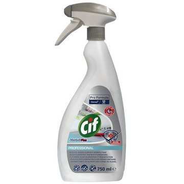 CIF PF Alcohol Plus é um desinfetante multi-superfícies de alta performance, pronto a usar, à base de álcool (77% Etanol).