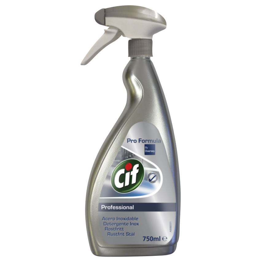 CIF PF SS Cleaner é um detergente especialmente desenvolvido para limpeza de superfícies em inox.