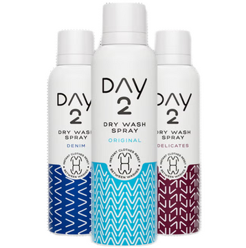 Uma borrifada rápida da fórmula exclusiva do Day2 em roupas já usadas, refresca, amacia e desamassa, reavivando-as instantaneamente, como se tivessem acabado de ser lavadas.