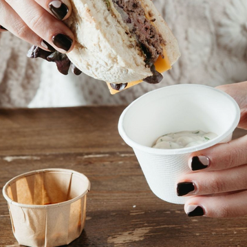 Mini terrina para apresentação de molhos e condimentos, em papel kraft anti-gordura.