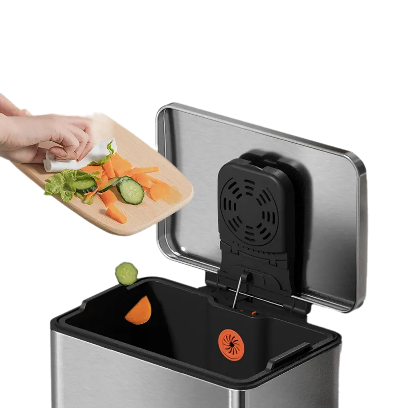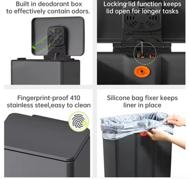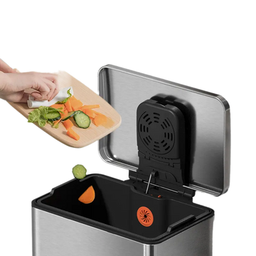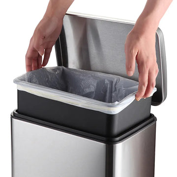 Prático. Inclui balde interior amovível em plástico, com uma prática fixação para o saco do lixo.