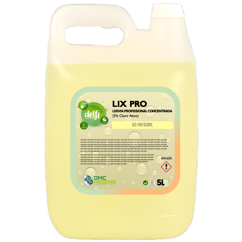 Lix Pro é uma lixivia de qualidade profissional, muito concentrada (com 5% de cloro ativo), especialmente desenvolvida para limpeza diária de pavimentos e superfícies.