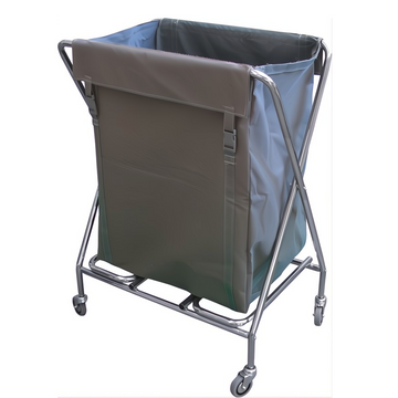 Carrinho de transporte de roupa, desenvolvido para utilização em lavandaria e hotelaria.