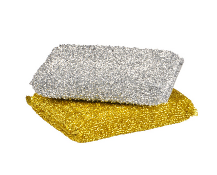 Esfregão com esponja, revestimento aço inox, limpa em profundidade sem riscar.