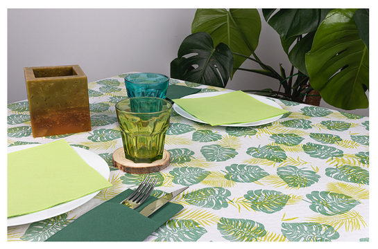 Embalados em práticos packs (dobrados em 1/8) que facilitam bastante o armazenamento em relação às toalhas de mesa convencionais.