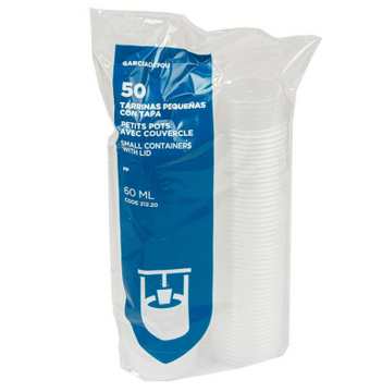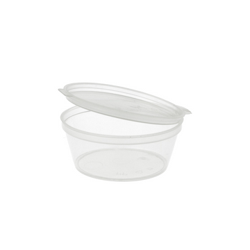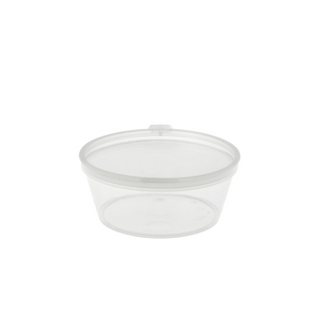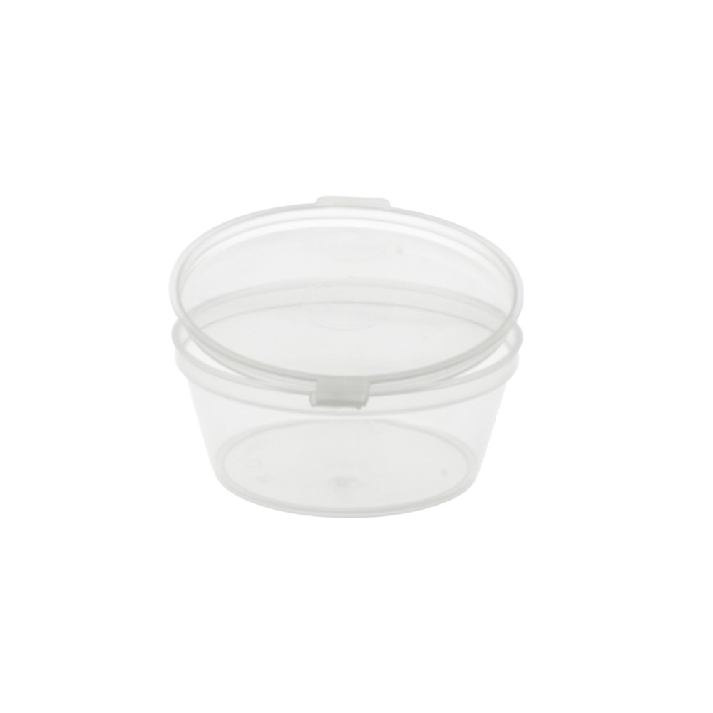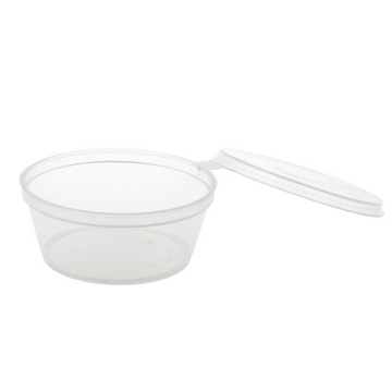 Pequena terrina com tampa incorporada para take away de molhos e condimentos.