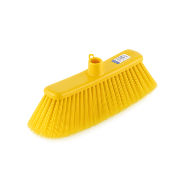 Vassoura larga de formato profissional, com filamentos em nylon/pvc despontados, idealmente desenvolvida para varrimento de interiores.