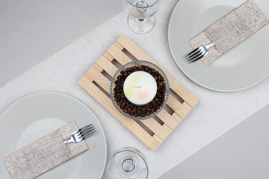 Os caminhos de mesa, também conhecidas como Tête à Tête, são rolos de mesa pré-cortados ideais para duas pessoas.