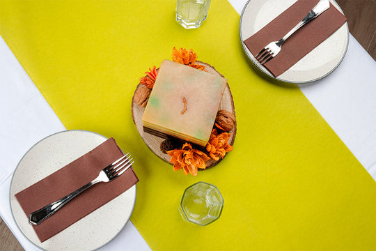 Os caminhos de mesa, também conhecidas como Tête à Tête, são rolos de mesa pré-cortados ideais para duas pessoas.