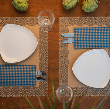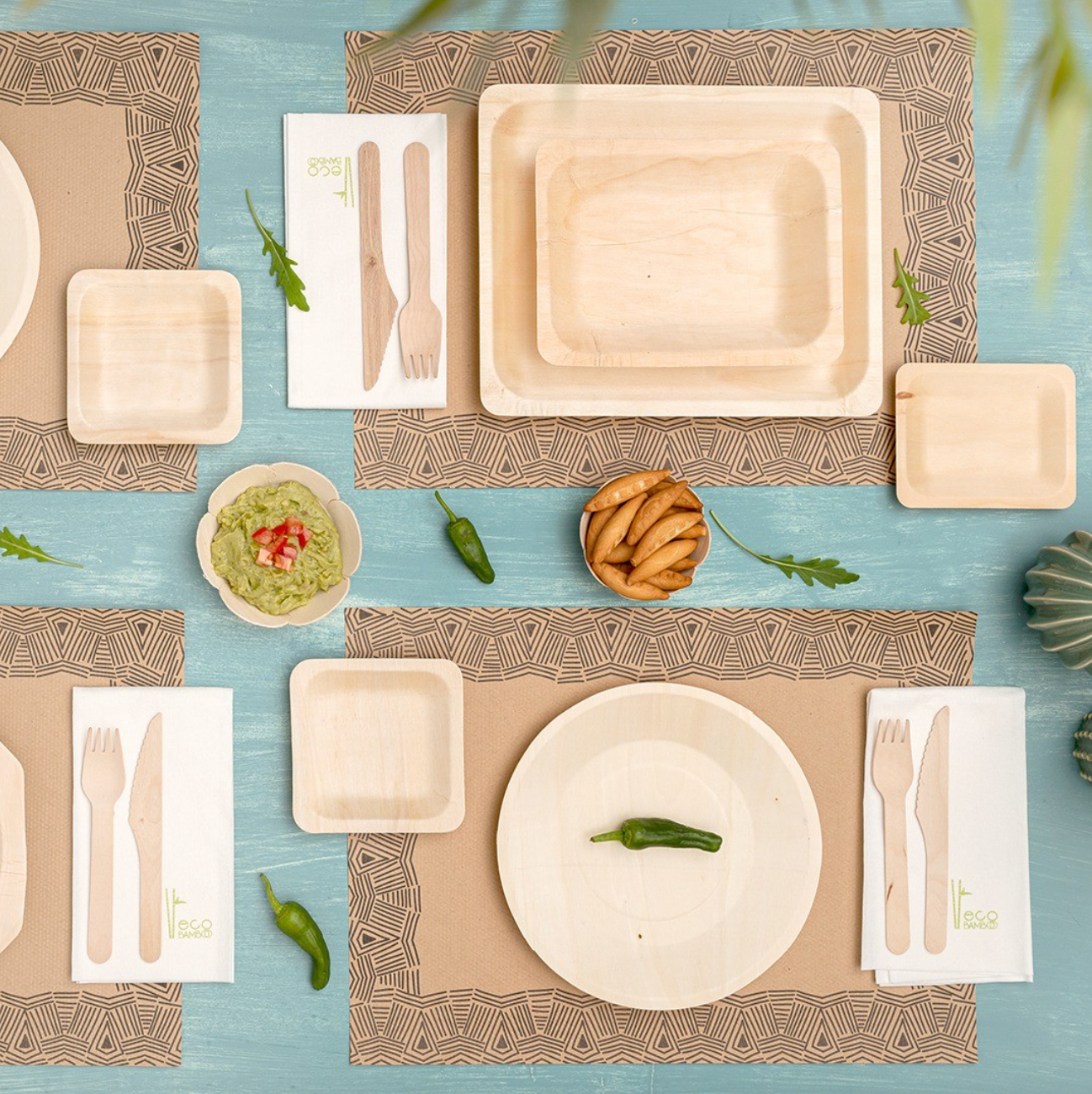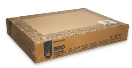 Toalhas de mesa individuais em papel texturado kraft reciclado de alta qualidade, com impressão em offset.