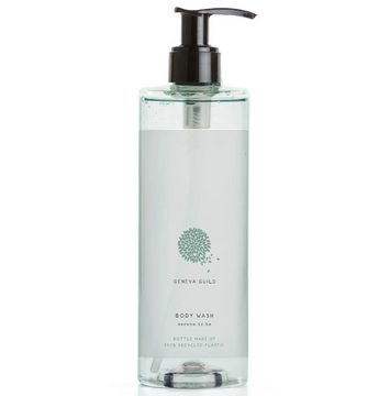 Geneva Guild Body Wash é um gel de banho de qualidade cosmética, enriquecido com extratos naturais de aloé vera.