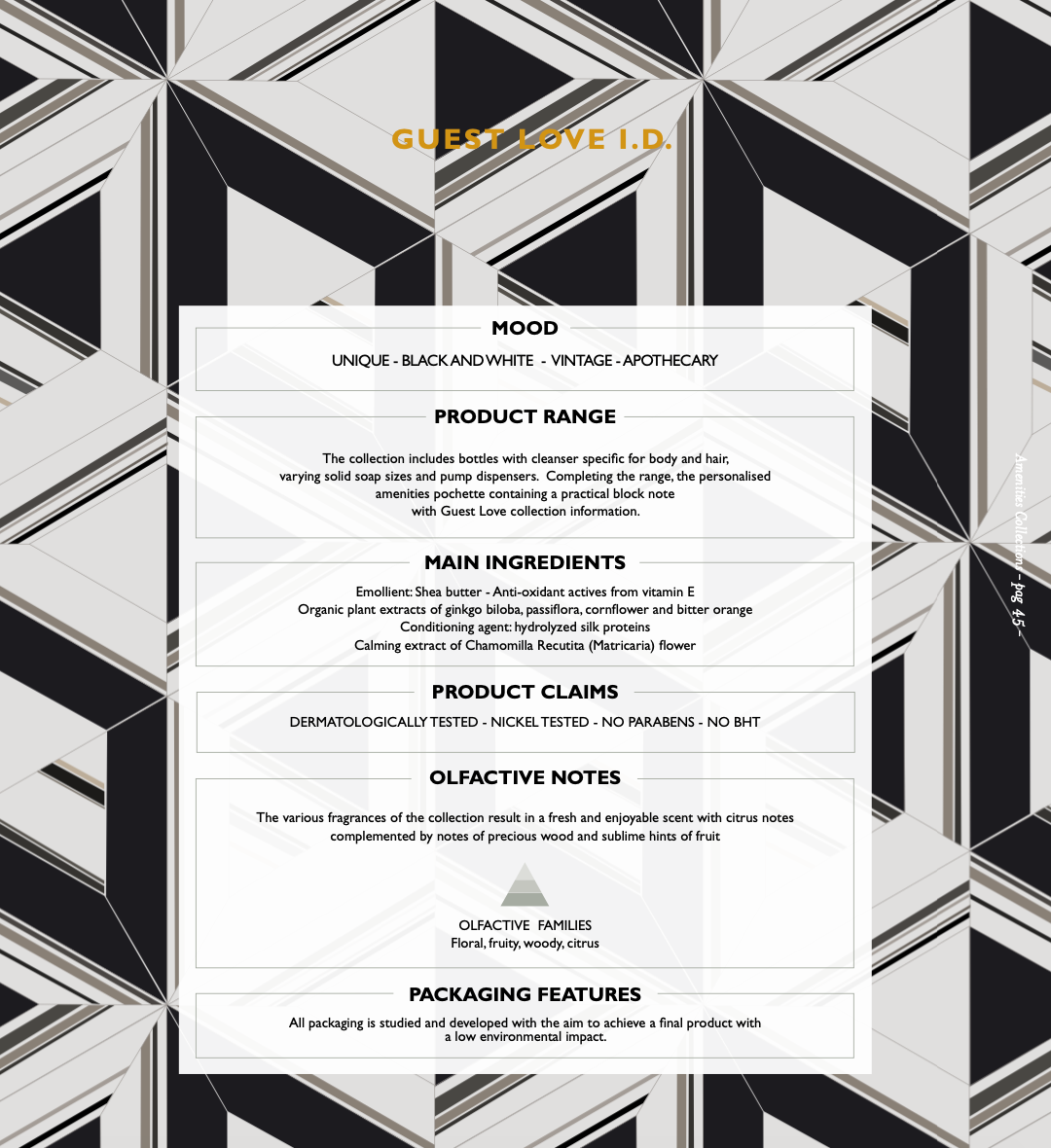 A linha Guest Love é caracterizada pelo seu estilo único e diferenciado, inspirado no estilo farmacêutico clássico Inglês. Desde o seu formato quadrado e gráficos vintage, os produtos da linha Guest Love são ideais para espaços modernos, sempre na busca das novas tendências.