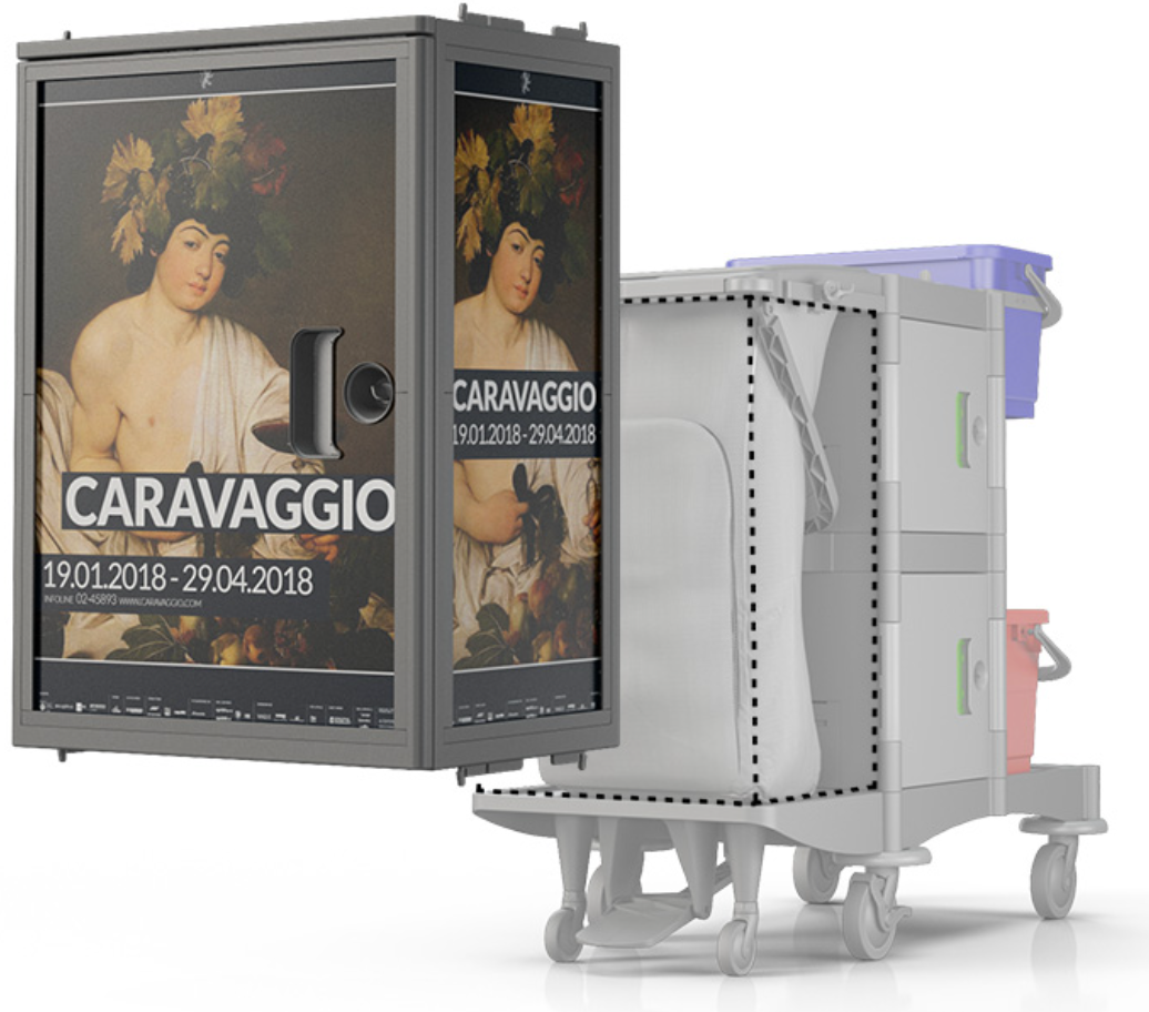 Estrutura de cobertura para sacos em carrinhos modulares IPC BRIX. Recomendado para todo o tipo de espaços públicos.