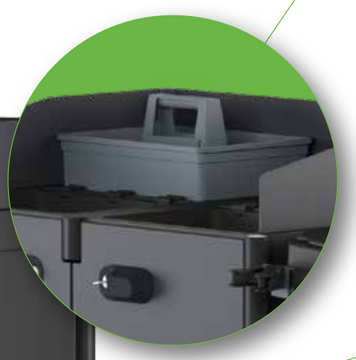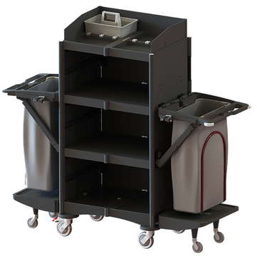 O carrinho modelo MAXI apresenta 4 níveis de prateleiras (3 internas) e 2 práticos porta sacos que poderão ser utilizados para a recolha de lixo ou roupa para lavandaria.