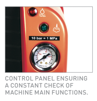 - Sistema de Vapor Saturado. Proporciona uma profunda e eficaz limpeza a alta temperatura, aliada a pressão mecânica, sem necessidade de recorrer a produtos químicos. Eficácia contra incrustações calcárias e sujidade intensa, mesmo contra óleos e gorduras.
