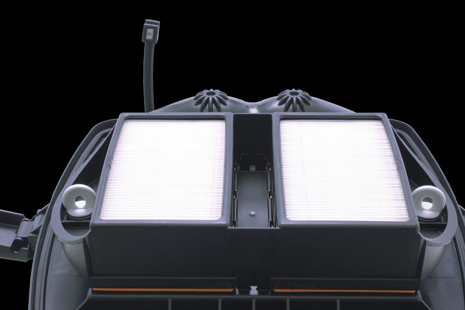 - Alta Filtração. Equipado com um filtro de certificação Classe M (absorve 99,9% de partículas com dimensão inferior a 2 microns).