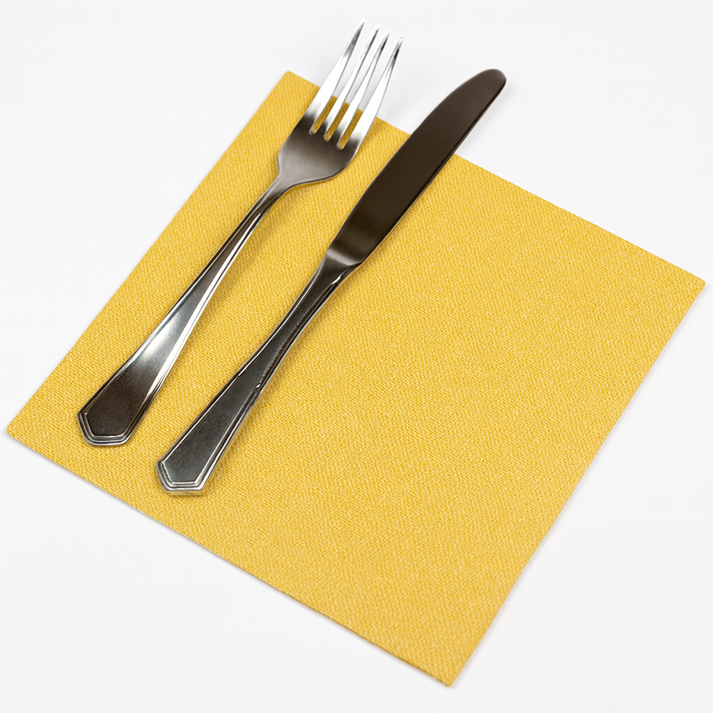 JOKER 40x40 2F PPP AMARELO é um guardanapo de mesa premium, folha dupla PPP (Ponto por Ponto), desenhado para restaurantes e serviços de catering que pretendem dar cor e diferenciação á sua mesa.