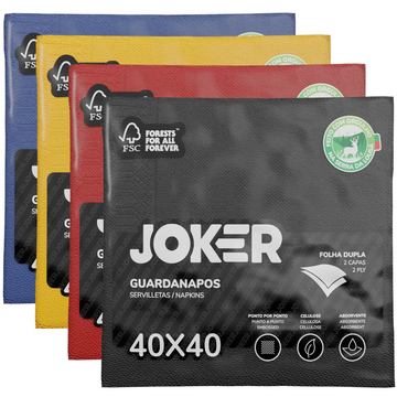 JOKER 40x40 2F PPP VERDE é um guardanapo de mesa premium, folha dupla PPP (Ponto por Ponto), desenhado para restaurantes e serviços de catering que pretendem dar cor e diferenciação á sua mesa.