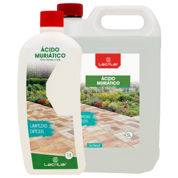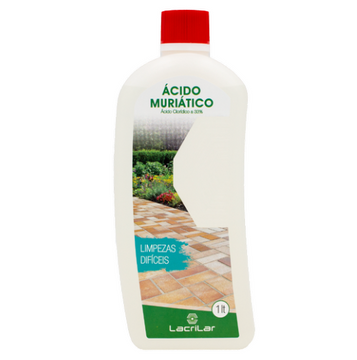 o Ácido Muriático é um químico tradicional, muito eficaz na remoção de resíduos de cimento e manchas de calcário em grandes superfícies, especialmente em espaços exteriores.