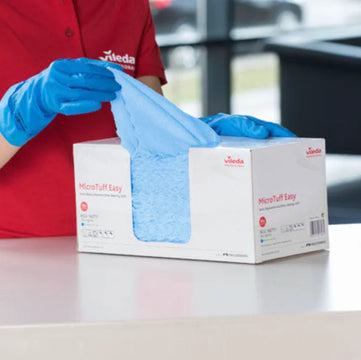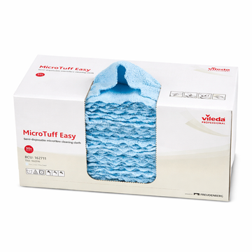 Vileda Microtuff Easy Pro é um pano de microfibra semi-descartável, de qualidade profissional, que vem numa prática caixa dispensadora e se encaixa perfeitamente para todos as tarefas de limpeza diárias. Perfeito para espaços onde a higiene é crítica como a área da saúde, em consultórios médicos, salas de manutenção, etc.