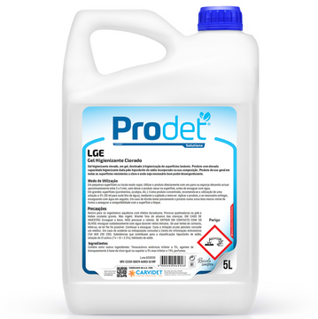 Prodet LGE é um detergente higienizante clorado em gel, especialmente desenvolvido para limpeza diária de pavimentos e superfícies.