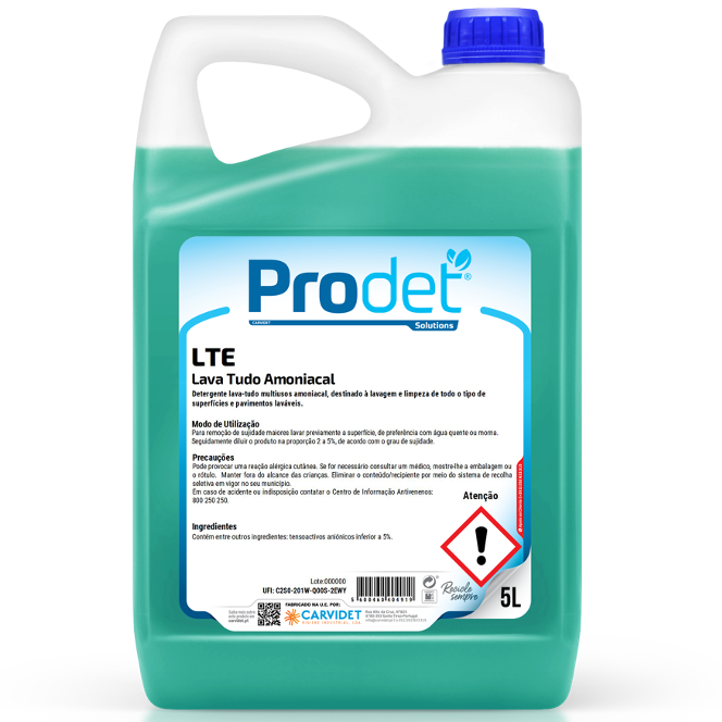 Prodet LTA é um detergente alcalino multiusos, especialmente desenvolvido para limpeza diária de pavimentos e superfícies.