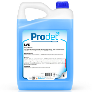 Prodet LVE é um detergente neutro multiusos, especialmente desenvolvido para a limpeza de vidros, cristais e superfícies brilhantes.