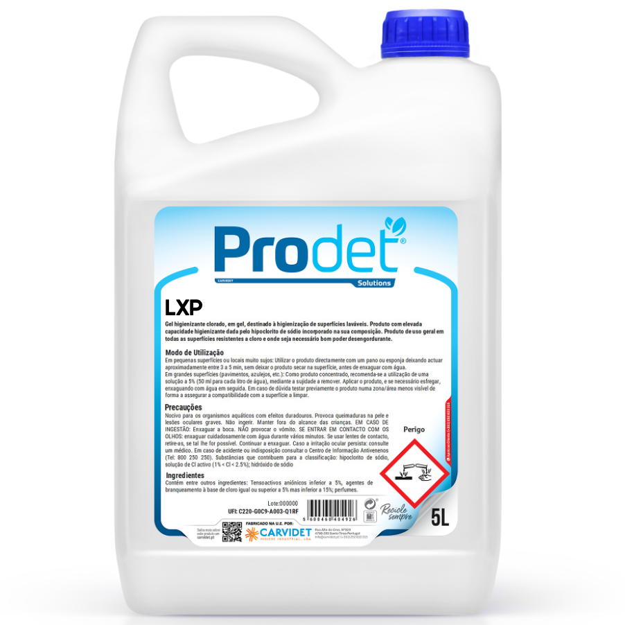Prodet LXP é uma lixívia perfumada com detergente, especialmente desenvolvida para limpeza diária de pavimentos e superfícies.