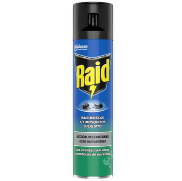 Graças à sua eficaz fórmula de ação imediata, com extrato de piretróides naturais, Raid® elimina eficazmente em segundos moscas, mosquitos e outros insetos voadores.