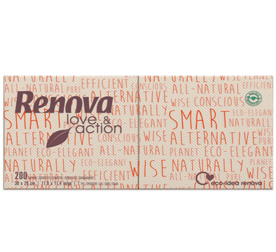 Renova Love & Action, são fabricados com papel cru natural, maioritariamente proveniente da reciclagem de papéis já usados, sendo a pasta proveniente da floresta certificada ou de origem controlada.
