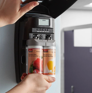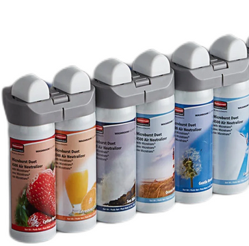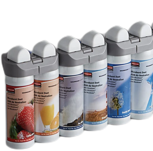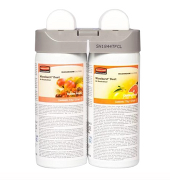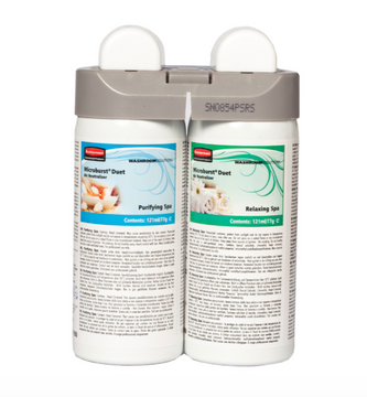 As fragrâncias Rubbermaid para o dispensador Microburst Duet distinguem-se pela sua combinação complementar com a particularidade de combaterem a fatiga olfativa.