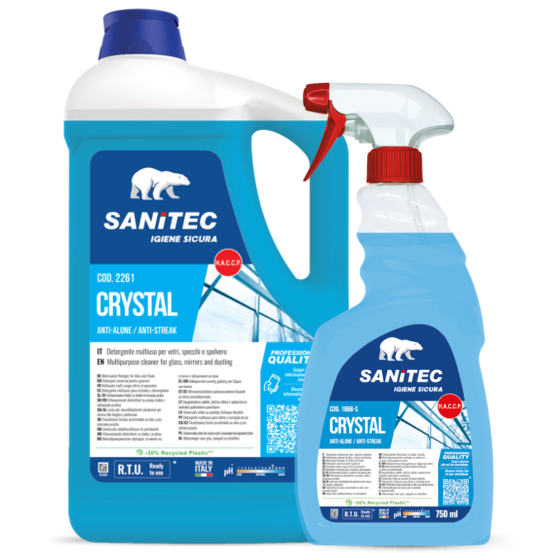 Sanitec Crystal é um detergente de limpeza multi-superfícies de alta qualidade e eficiência.