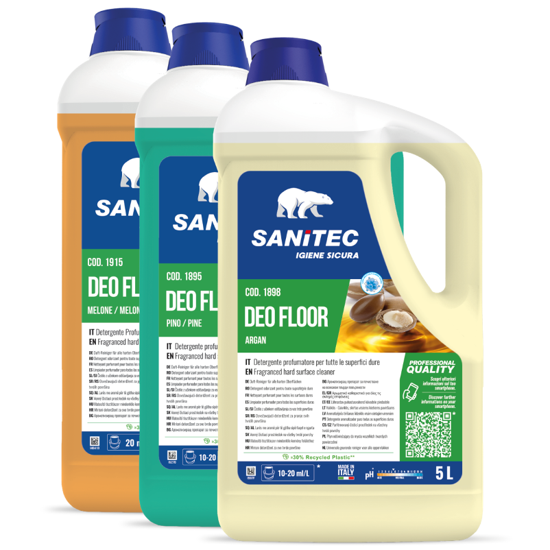 Deo Floor é um detergente neutro perfumado, de alta performance, desenvolvido para a lavagem diária de pavimentos, indicado para utilizadores profissionais que procuram uma solução diferenciadora em termos de eficácia de aroma.