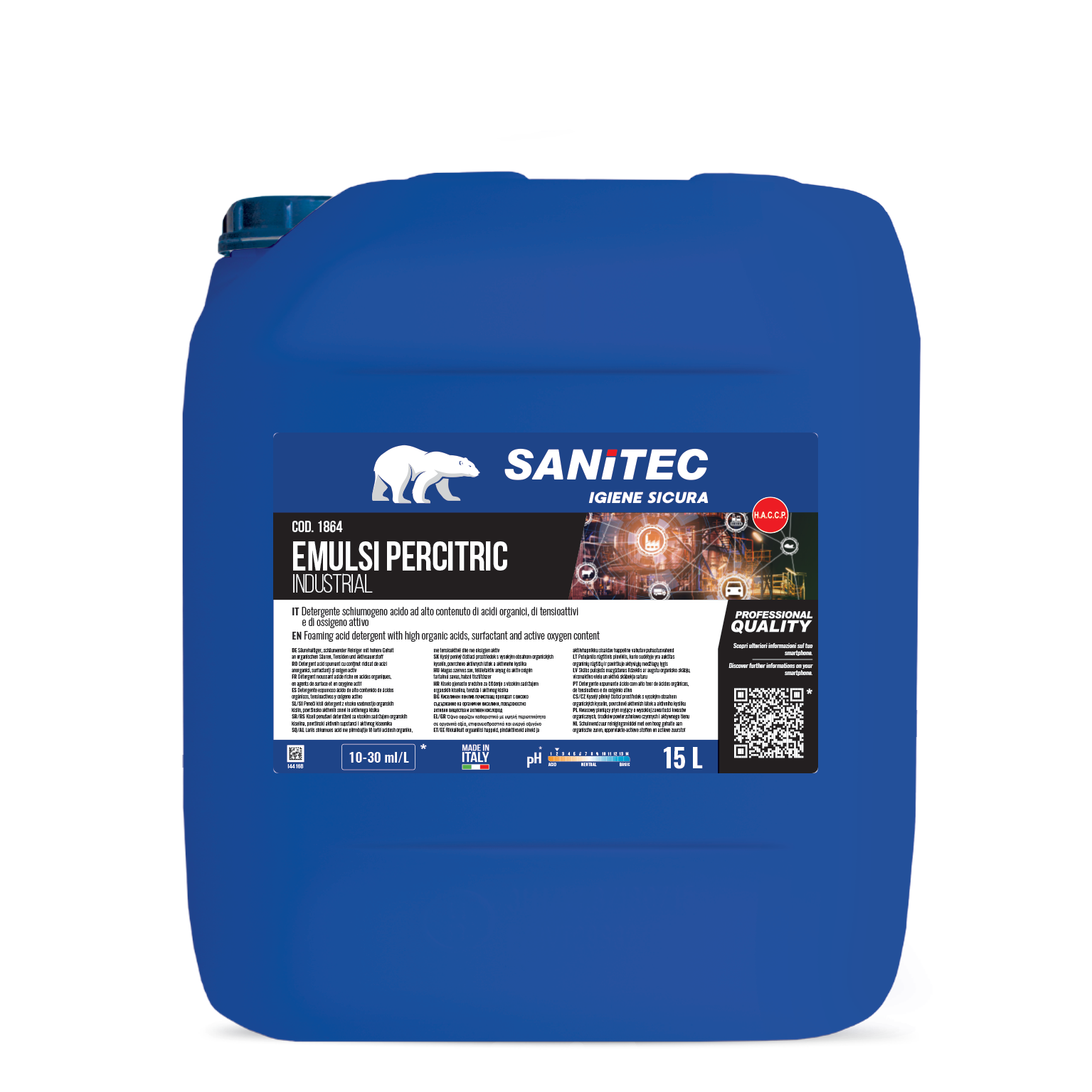 Emulsi-Percitric é um detergente espumante com alto teor de ácidos orgânicos, peracético e oxigénio ativo de alta eficácia, desenvolvido para sistemas de projeção na indústria agro-alimentar.