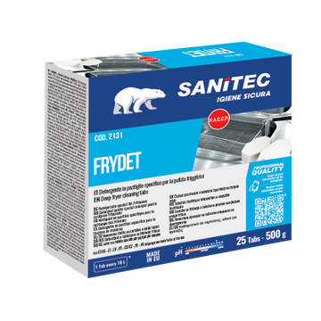 Frydet é uma especialidade Italchimica. Um desengordurante em pastilha efervescente concentrada, de alta performance, desenvolvido para limpeza de depósitos de fritadeiras.