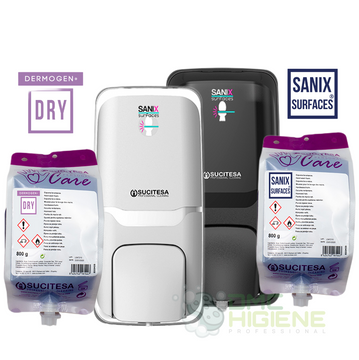 Dispensador de desinfetantes em spray para enchimento com bolsas recarga Sucitesa, hermeticamente seladas.
