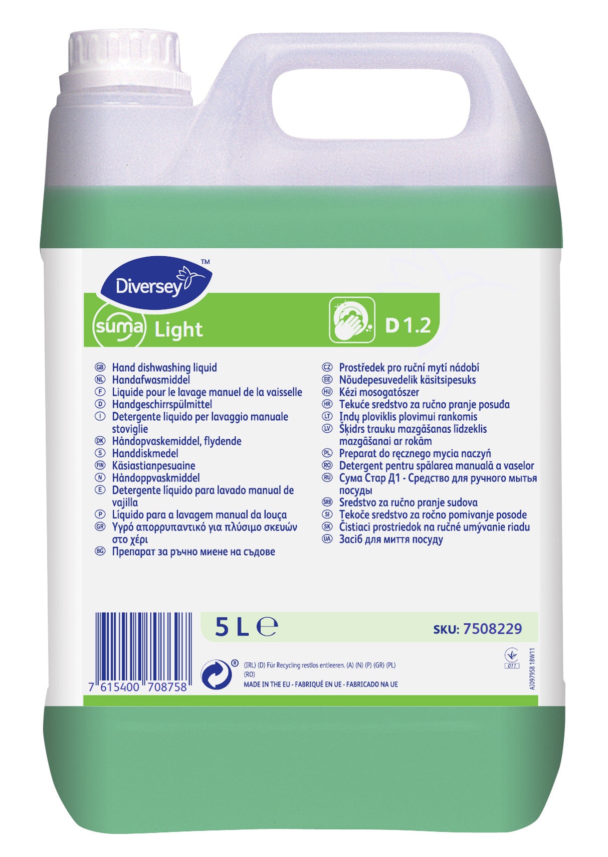 Suma Light D1.2 é um detergente líquido neutro, adequado para a lavagem manual de todos os utensílios de uma cozinha.