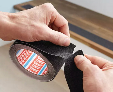 A fita anti-derrapante tesa oferece extrema segurança em qualquer chão mais escorregadio. É ideal para degraus, rampas, escadas e outras superfícies críticas.