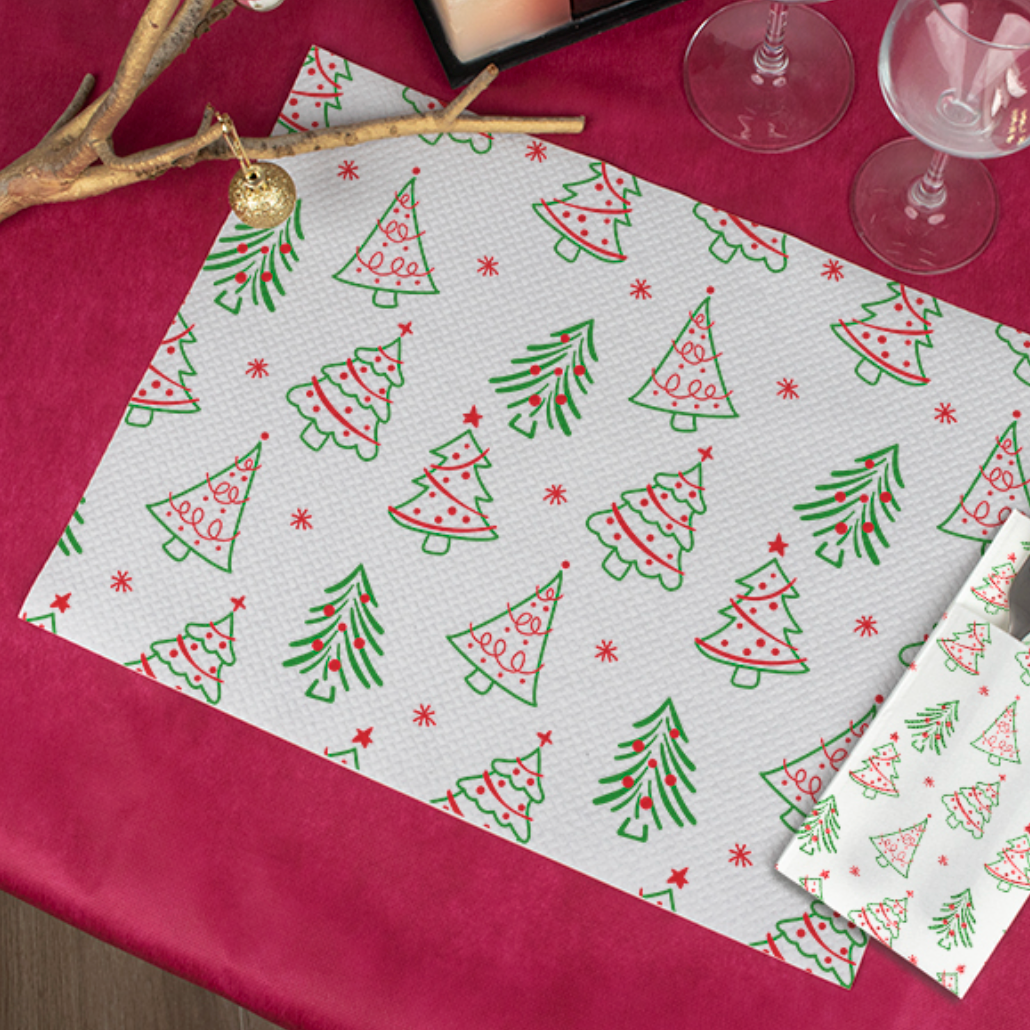 Toalhas de mesa individuais, com decoração natalícia.