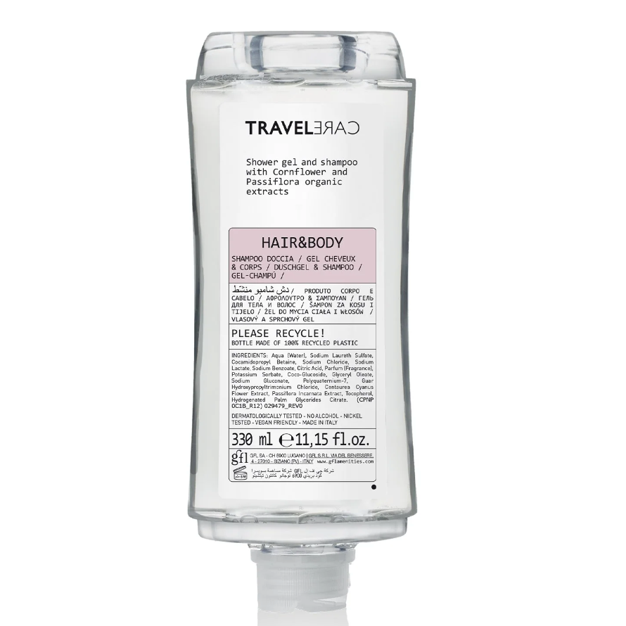 TravelCare Hair & Body é um gel suave, de qualidade cosmética, indicado para lavagem das mãos, corpo e cabelo.