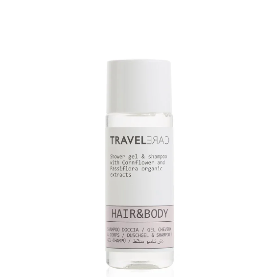 TravelCare Hair & Body é um gel suave, de qualidade cosmética, indicado para lavagem das mãos, corpo e cabelo.