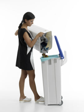 • Prático e funcional: Abertura de grande amplitude e um prático sistema de fixação de saco.