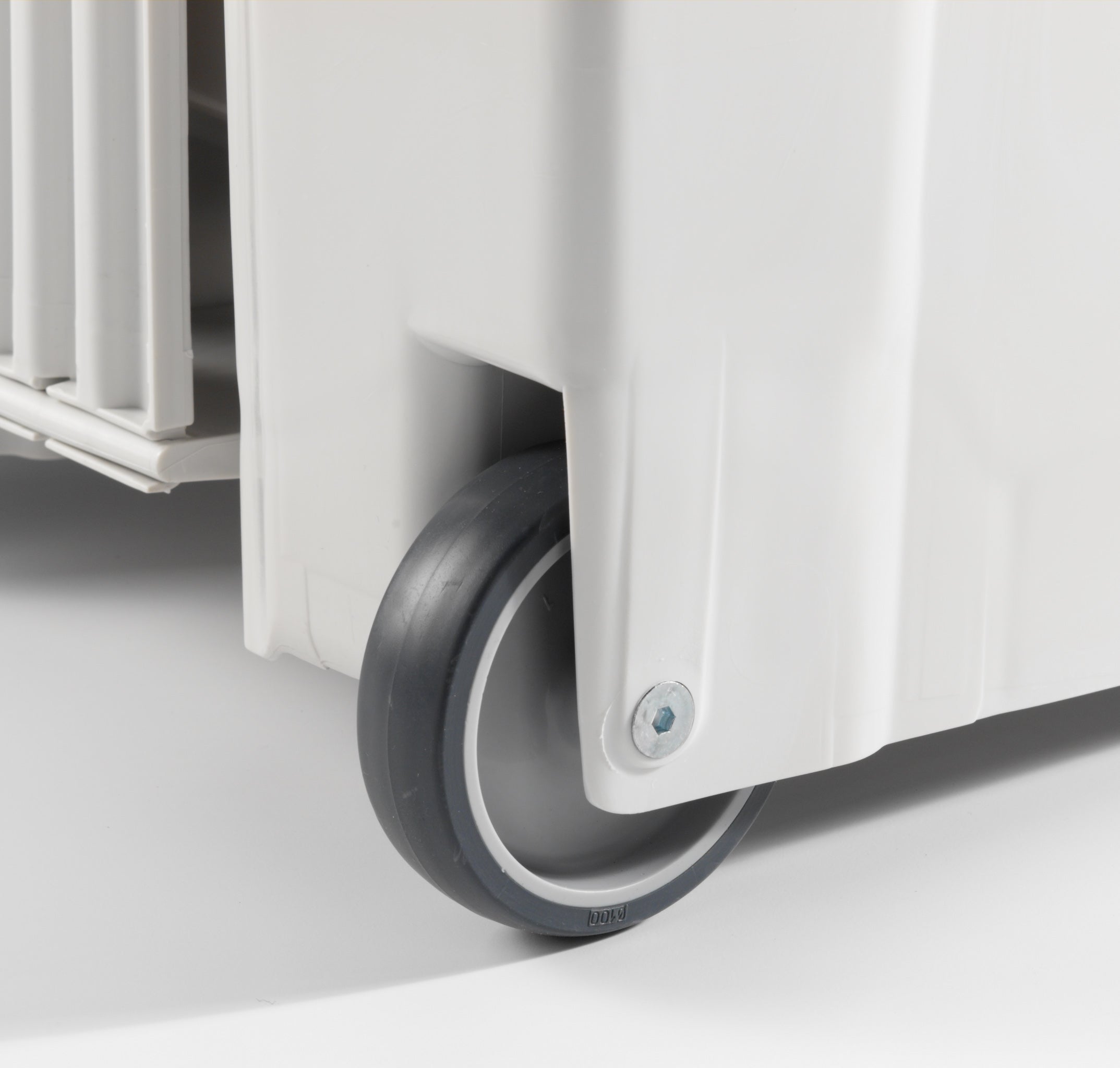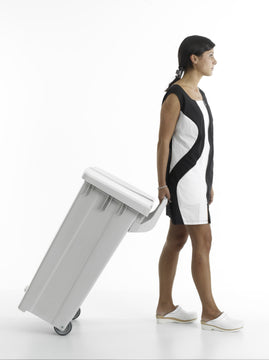 Formato de alta capacidade (90L) e com 2 rodas de suporte que garantem uma excelente mobilidade.