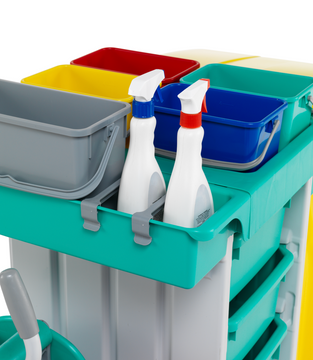 Versátil: Adequado para uma panóplia de utilizações, como transporte de detergentes, utensílios de limpeza ou simplesmente água. Pode inclusive ser incorporado nos carrinhos de limpeza TTS.