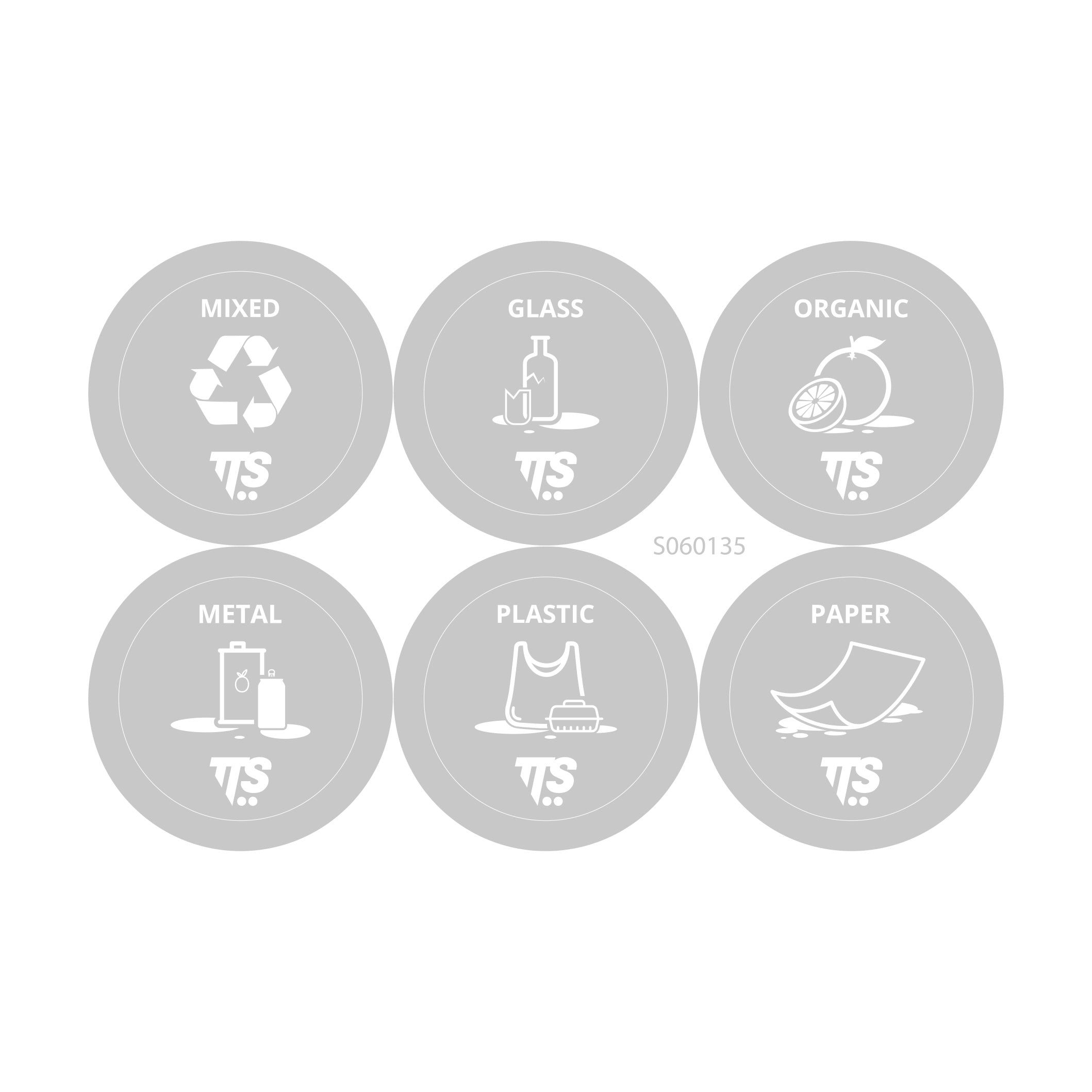 Inclui um set de 6 etiquetas para separação de resíduos.